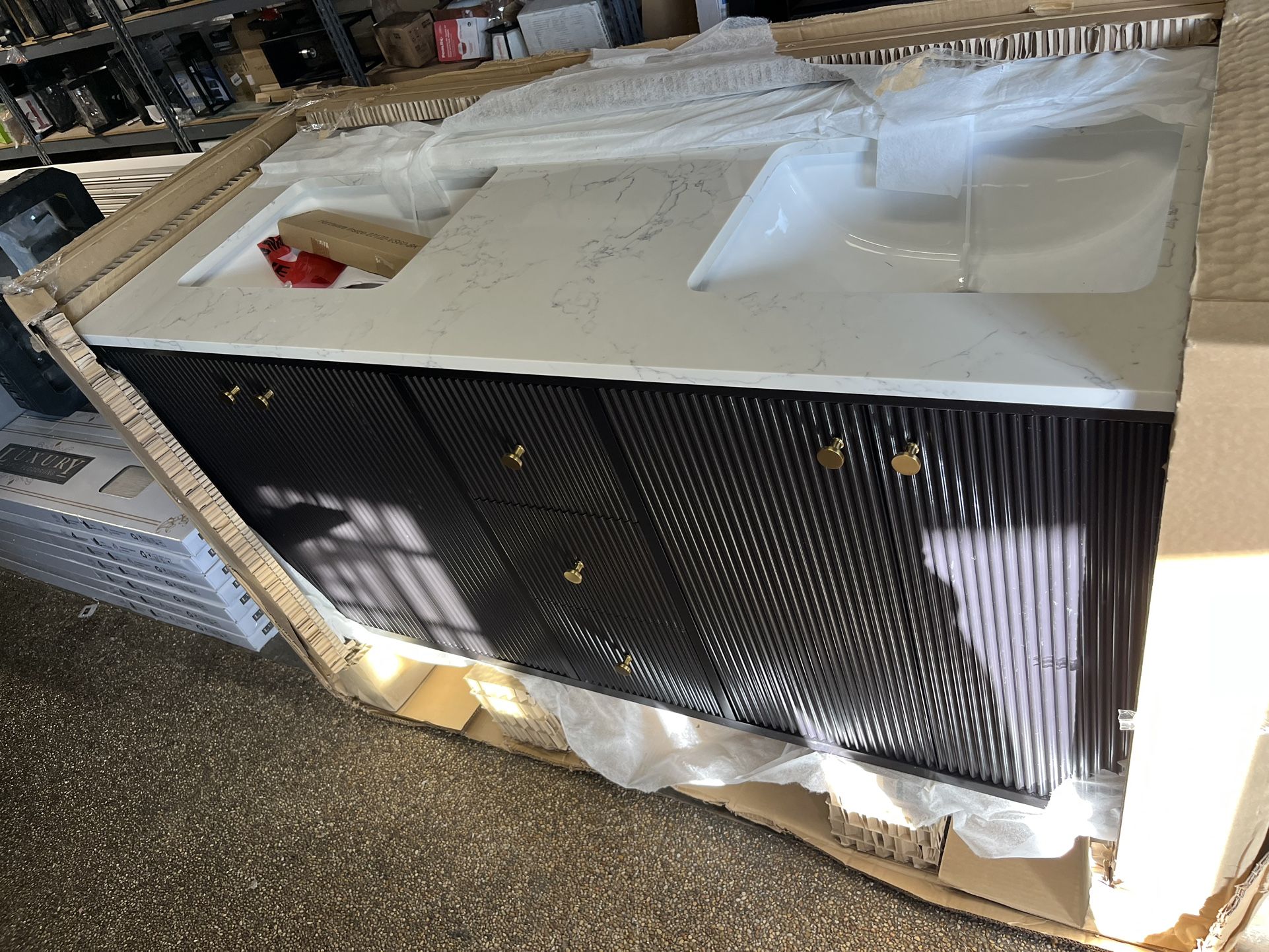 60 inch Carrera marble top bathroom vanity sink with cabinet