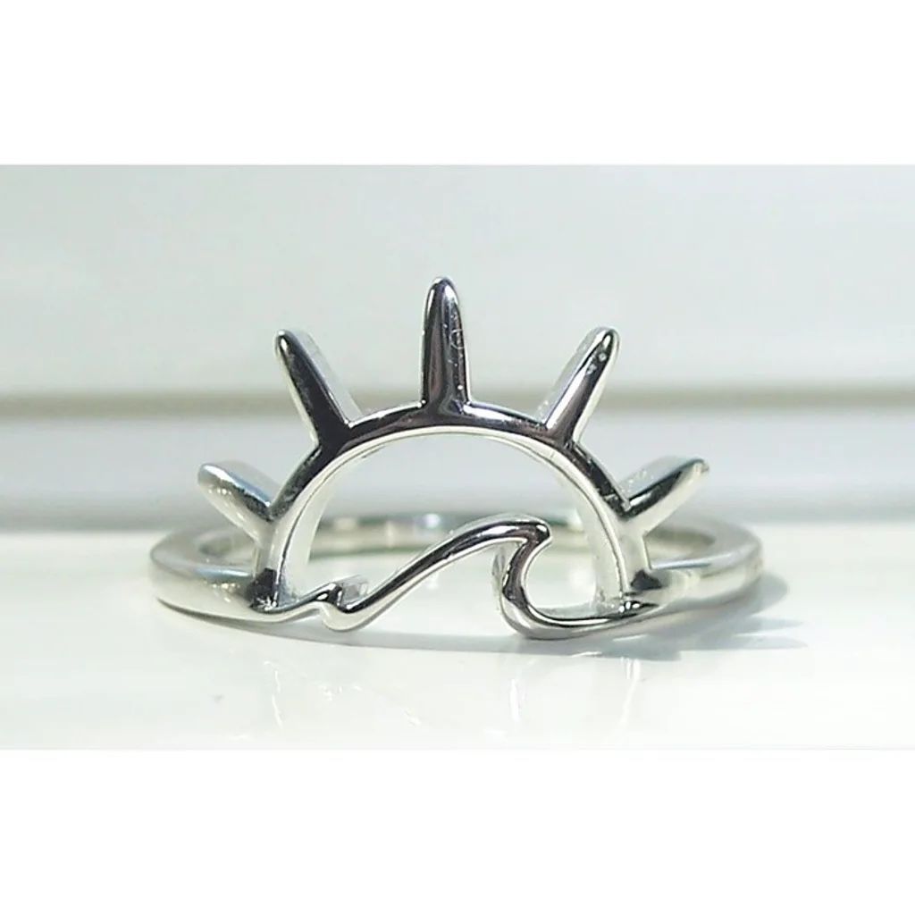 Size 10, 925 Sterling Silver Dainty Sun & Ocean Wave Ring