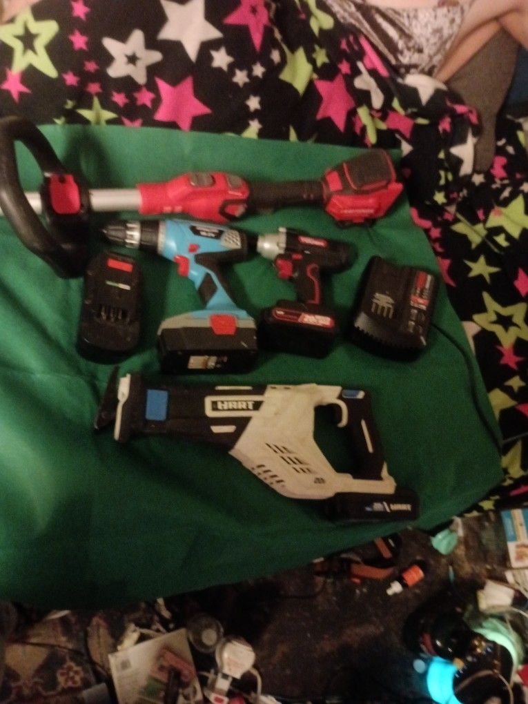20v.hart reciprocating saw with battery,20vhypertoughdriver with battery,20v.charger,19.2v drill with battery,18vfirestorm battery