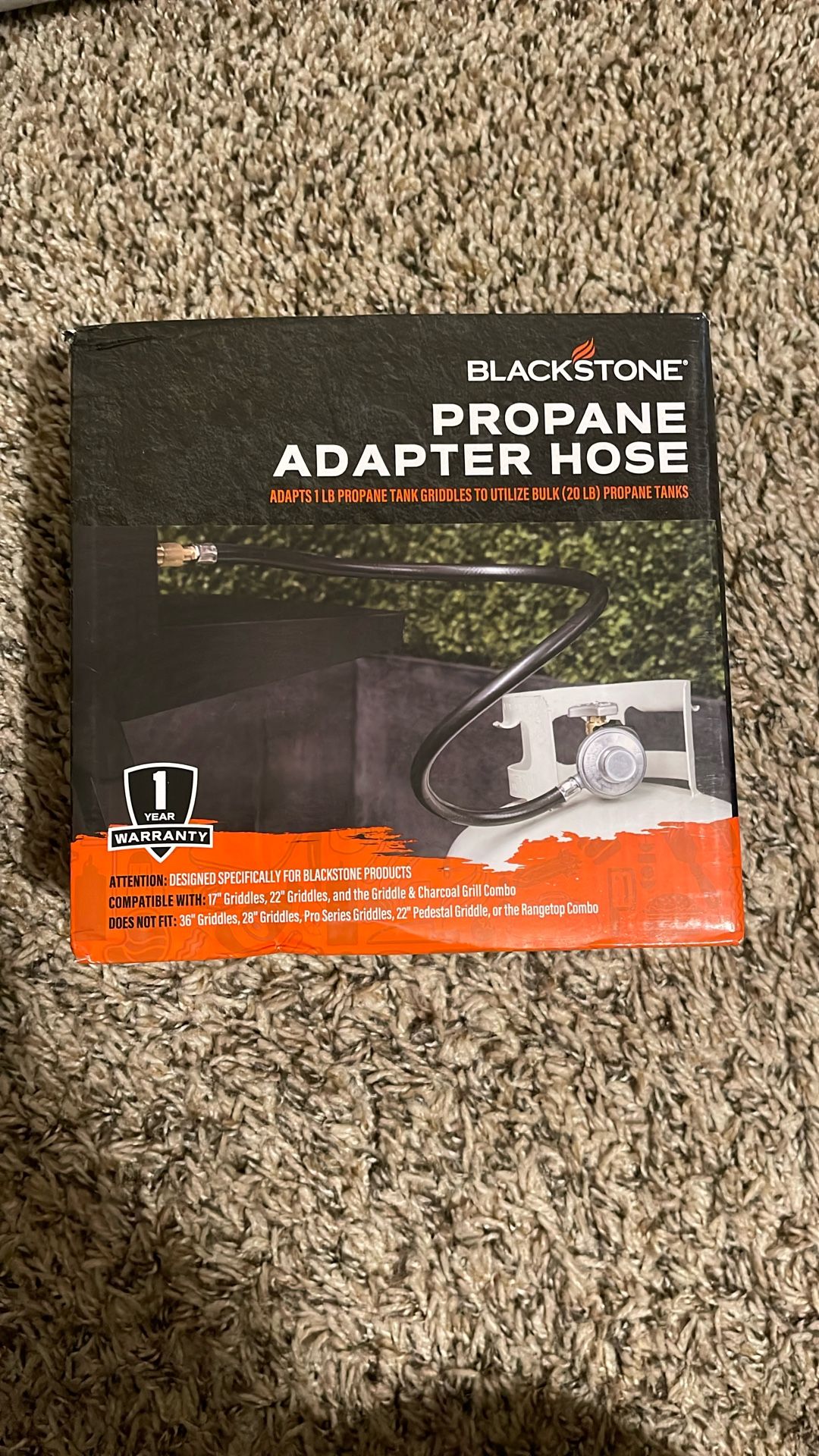 Blackstone propane adapter hose Comparable with 17”, 22” griddle & charcoal grill combo In Tacoma by hwy7 & 512 Can meet at dollar tree at 9830 pacific ave Tacoma 98444