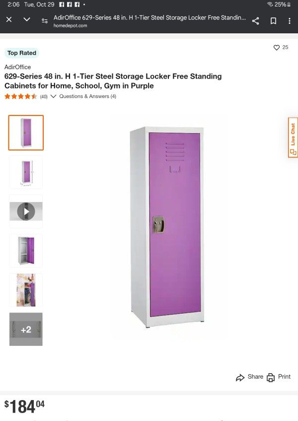 629-Series 48 in. H 1-Tier Steel Storage Locker Free Standing Cabinets for Home, School, Gym in Purple