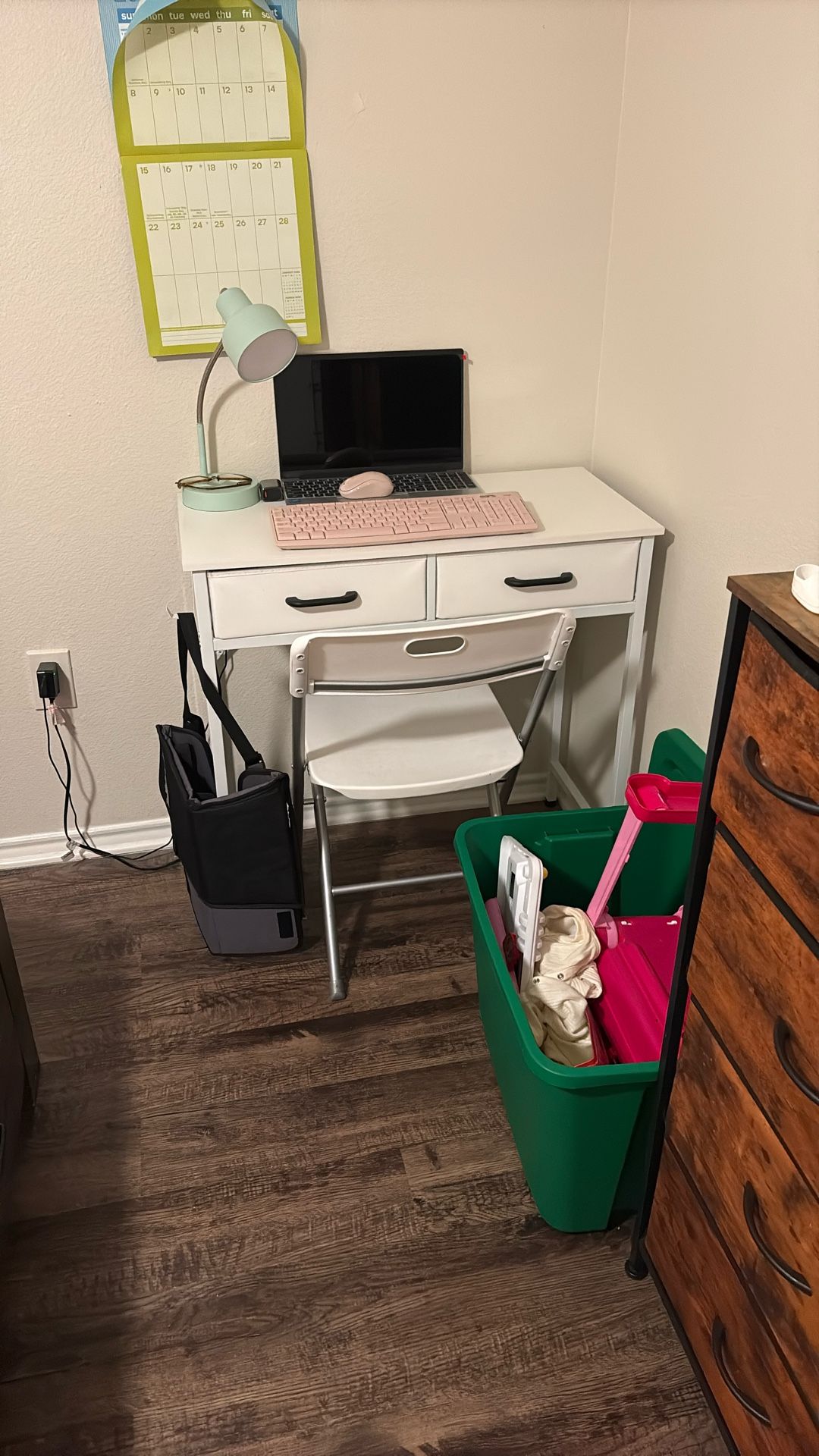 I have a student desk with two drawers and a hook off the side. Can also be used as a computer desk.