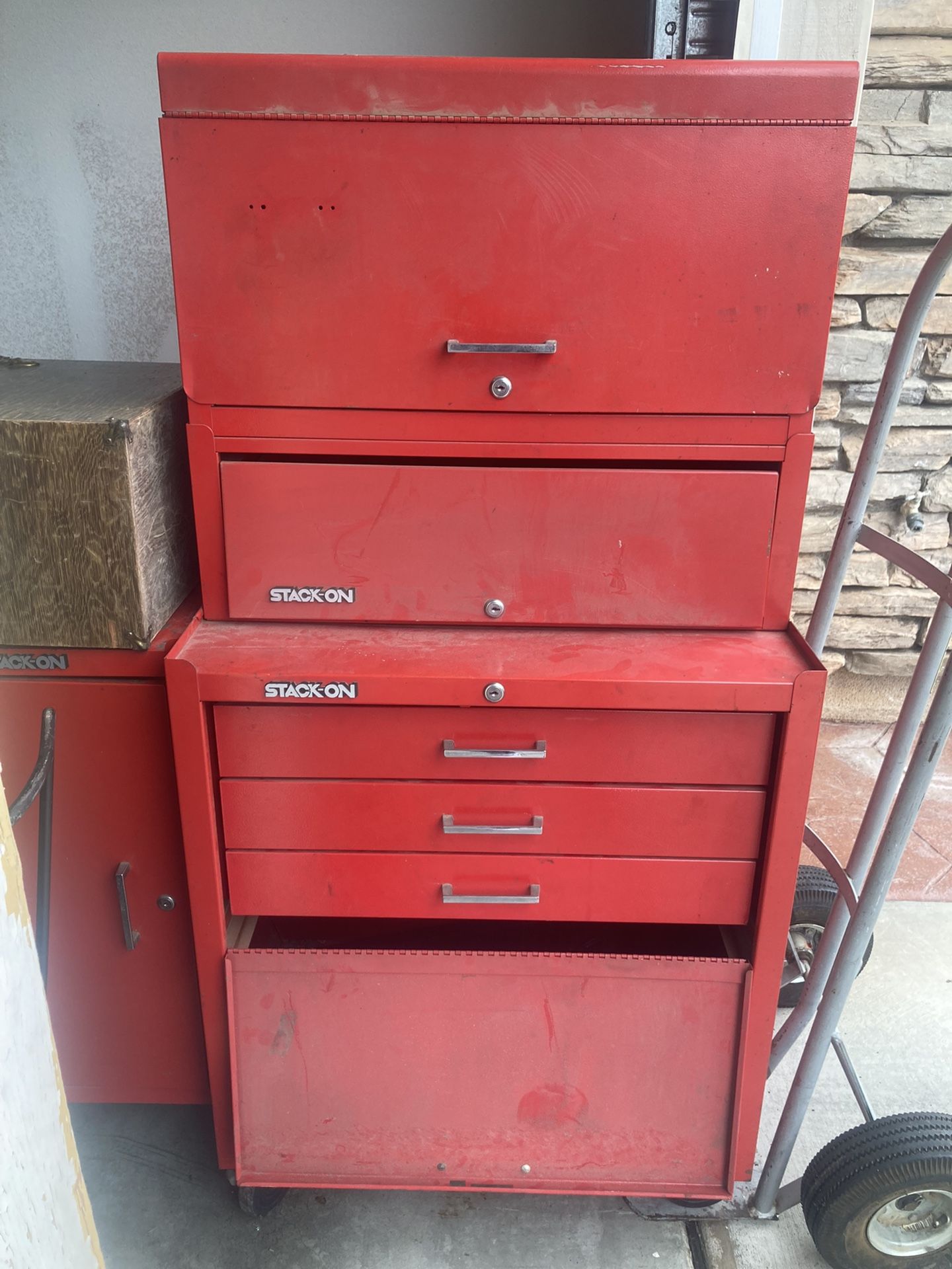 Vintage stacking tool box, no keys but everything’s in good working condition.