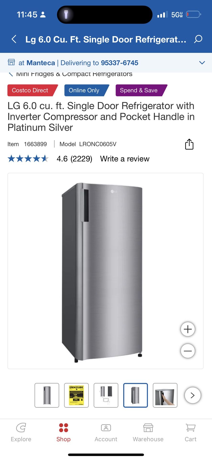 LG 6.0 cu. ft. Single Door Refrigerator with Inverter Compressor and Pocket Handle in Platinum Silver