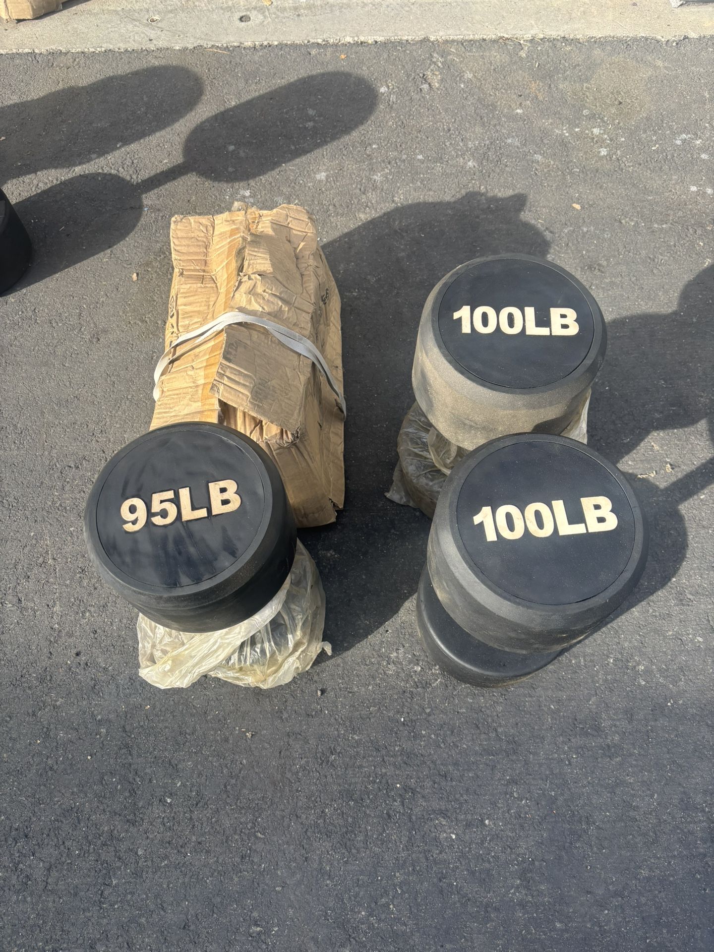 We are doing some new year cleaning and came across these beauties. Don’t let the dust fool you. These are commercial grade and you won’t find a better price anywhere close to this. These are brand new and might have a few little dings from storage. If you price these out the price is well over $2k. This is a great deal. COMMERCIAL QUALITY Equip your gym with our commercial dumbbells, engineered to withstand high-volume use, drops, and rough handling. Constructed from solid steel and coated in heavy-duty rubber, these dumbbells are exceptionally durable and abrasion-resistant, ensuring they maintain their sleek appearance over time. They also come equipped with straight, chrome, fully knurled handles for enhanced grip, with heads firmly attached via durable friction welding. With round weight heads and clear markings, they create a premium, high-end look, and will enhance the feel of your gym.