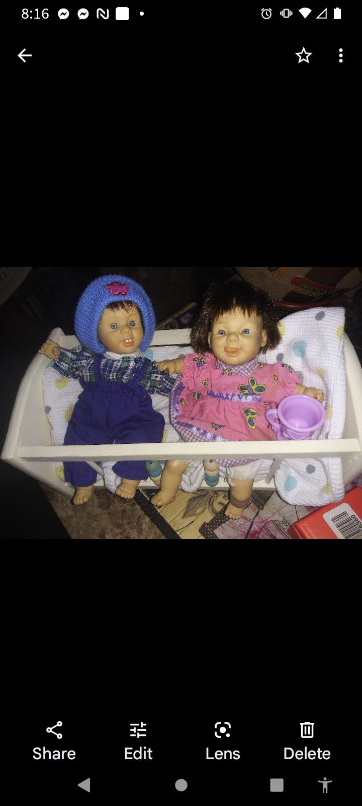 Twin babies with crib and blanket