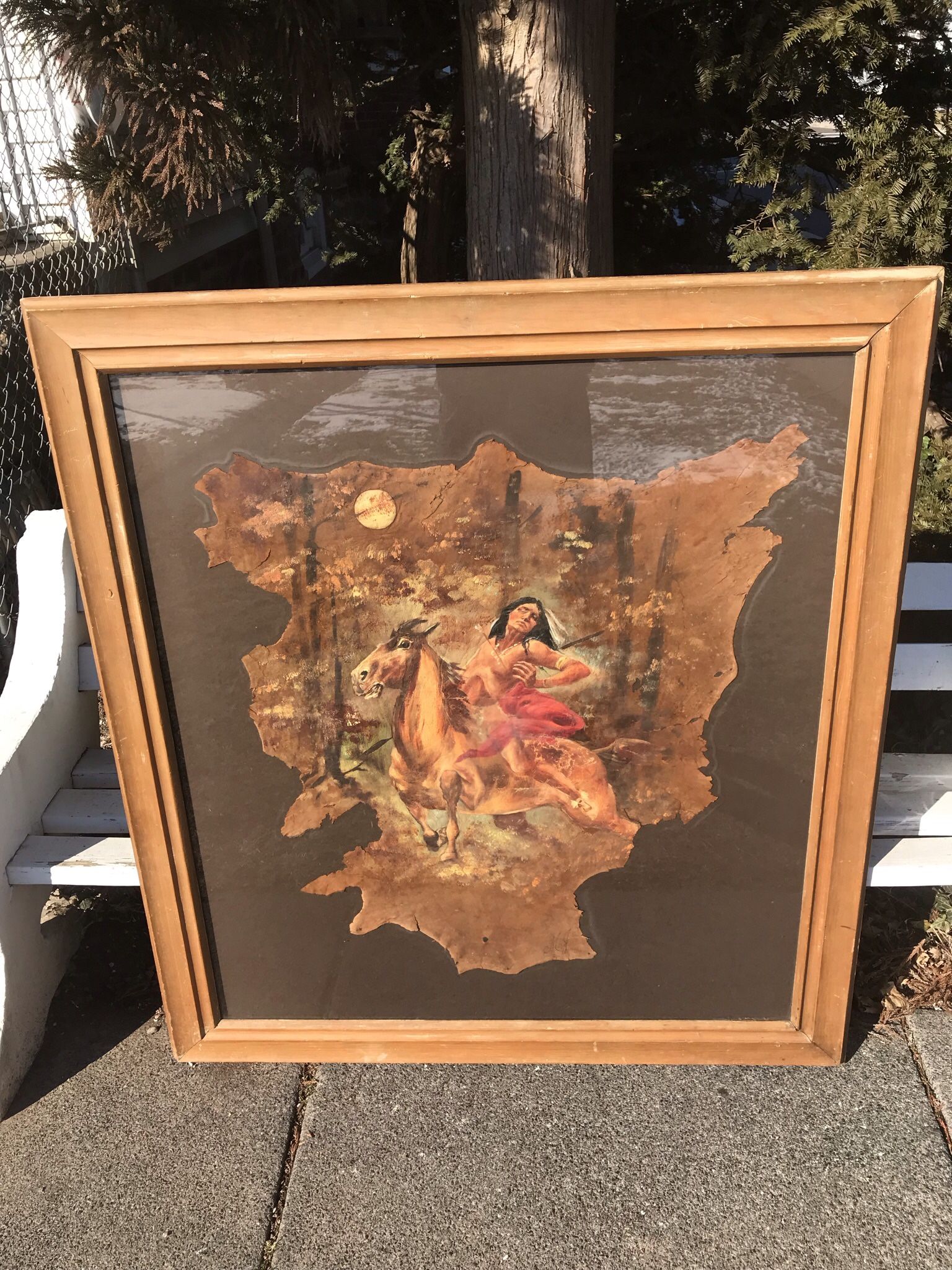 Vintage Indian Warrior Painting On Hide