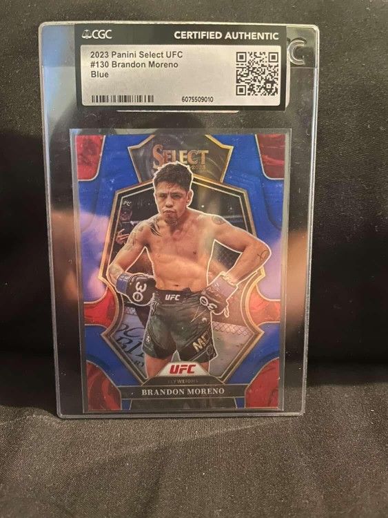 π₯ 2023 Select UFC #130 | CGC AUTH Up for sale is a 2023 Select UFC Premier Level Brandon Moreno Blue /199 (#130), professionally CGC AUTH slabbed. A sharp, low-numbered Select parallel of a former UFC Champion and fan favorite. β Card Details: Fighter: Brandon Moreno Card #: 130 Set: 2023 Select UFC Level: Premier Level Parallel: Blue Serial Number: /199 Grading Company: CGC AUTH Sport: MMA / UFC Authentic slab β ready for display or collection. π Why This Card Is a Solid Pickup: Brandon Moreno is one of the most popular fighters in the UFC and a former Flyweight Champion. Premier Level Select cards are highly collectible, and the Blue /199 adds extra rarity and visual pop. ππ¦ Pickup & Shipping Available: Local pickup available Shipping available Secure packaging with tracking Slab protected for safe delivery π° Up for sale β accepting offers! Great for UFC collectors, Select fans, or anyone building a graded MMA collection.