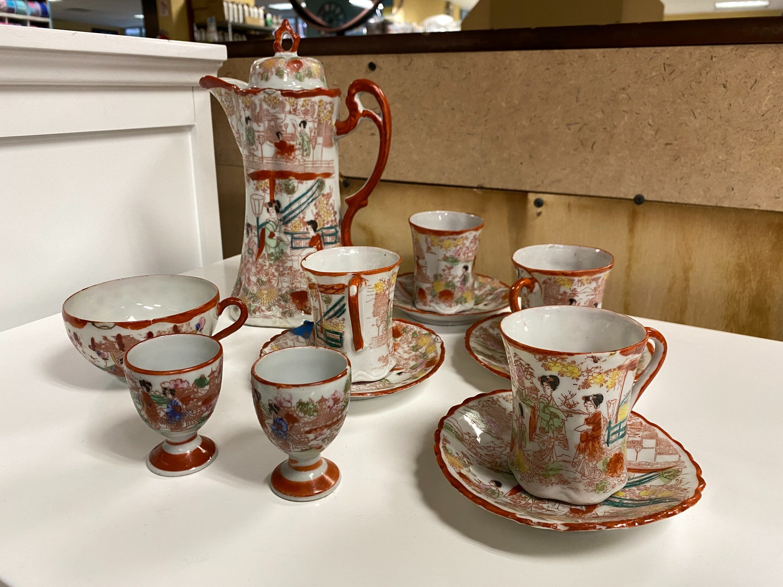 Vintage Japanese 13-Piece Bone China Hand Painted Coffee Set