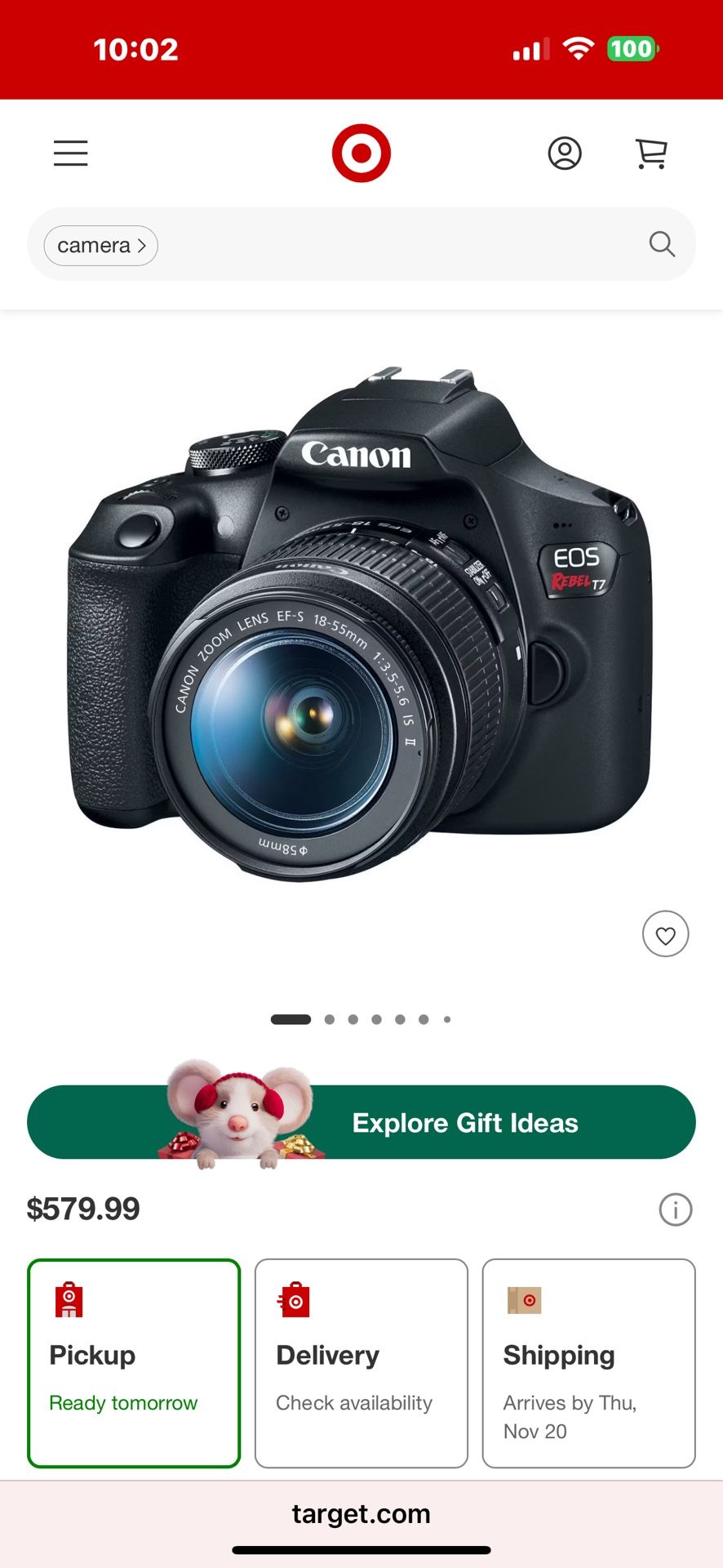 24.2-megapixel APS-C sensor ISO 100 - 25600, expandable to 51200 Capture fast-action shots at up to 6 fps Dual Pixel CMOS AF with phase-detection Capture spectacular HDR movies in Full HD Built-in Wi-Fi to instantly share your pictures Description: Up your photography game with the EOS Rebel T7. Perfect for beginners, this camera bundle offers the essential tools you need to take your SLR skills to new heights : all in one convenient package. No matter where your next photography adventure takes you, count on the EOS Rebel T7's impressive 24.1 Megapixel CMOS sensor and wide ISO range of 100-6400 (H:12800) to capture high-quality images, even in low-light situations. Want to share your favorite photos on social media? That's no problem with the EOS Rebel T7's built-in Wi-Fi®* and NFC** technology, making sharing and uploading photos effortless. This camera also comes equipped with a large LCD display, fast autofocus system and Full HD video recording for a variety of impressive, easy-to-use features.