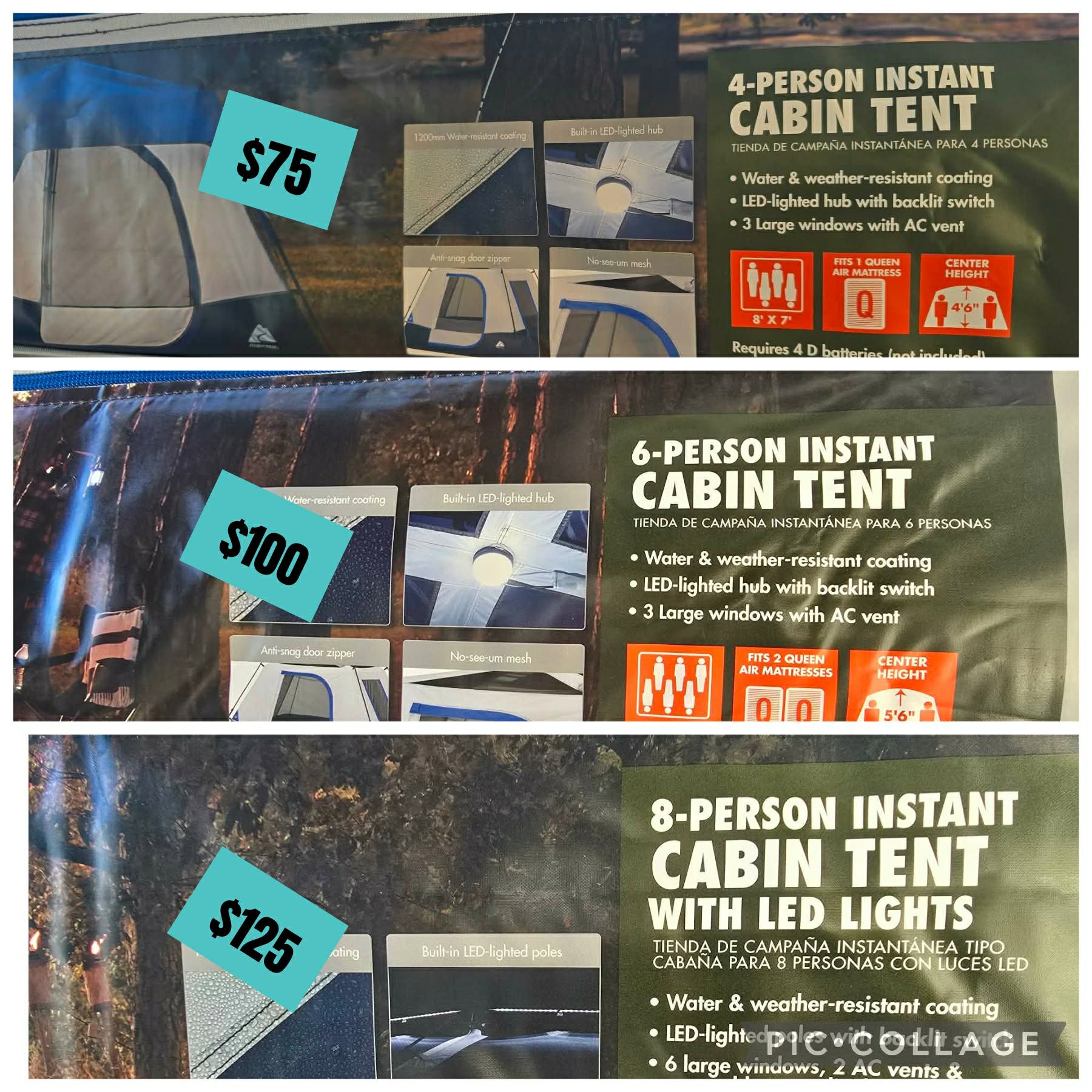 Brand New Tents. Prices are in pictures. 4 person $75 6 person $100 8 person $125