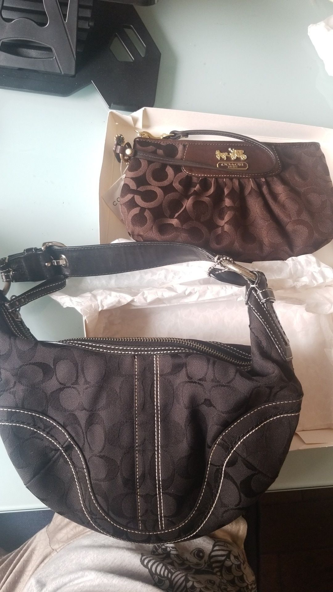 Selling these for my wife. The brown wristlet is brand new with tags, asking $50 OBO. [SOLD] The black purse is pre-owned and kept in good condition. It's model 6266 Jacquard. Asking $150 OBO Cash only and local pickup.