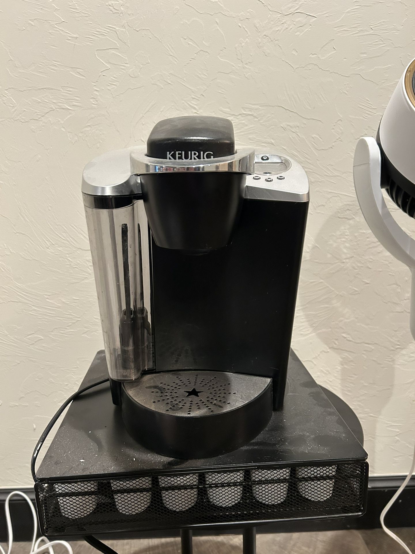I am selling my Keurig coffee maker that I've had for years. It is very old, but it still works. I never really used it much, so I'm ready to let it go since it just takes up space. It is a K60 Special Edition. Comes with the K-Cup storage drawer. K-Cups are available on request (free; I will not discount the listing if you do not want them), but they are all old and very expired. I also have some filters for the water tank that are included. It's a bit dusty from lack of use, but after a good cleaning and running a rinse tank through it should be good to go. It was recently descaled. Sold as is!