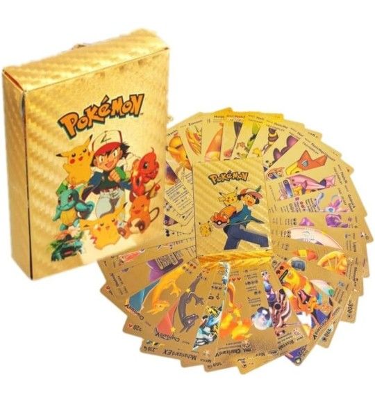 Gold Foil Pokémon Style Cards – VMAX, GX, EX Rare Trading Cards Set – Collectible Battle Deck – Premium Golden TCG Cards for Kids, Fans & Gift Boxes