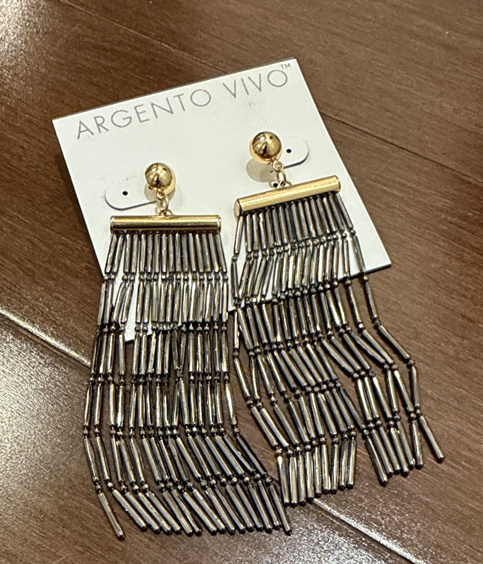 Argento Vivo Gold and Silver Fringe Beaded Earrings