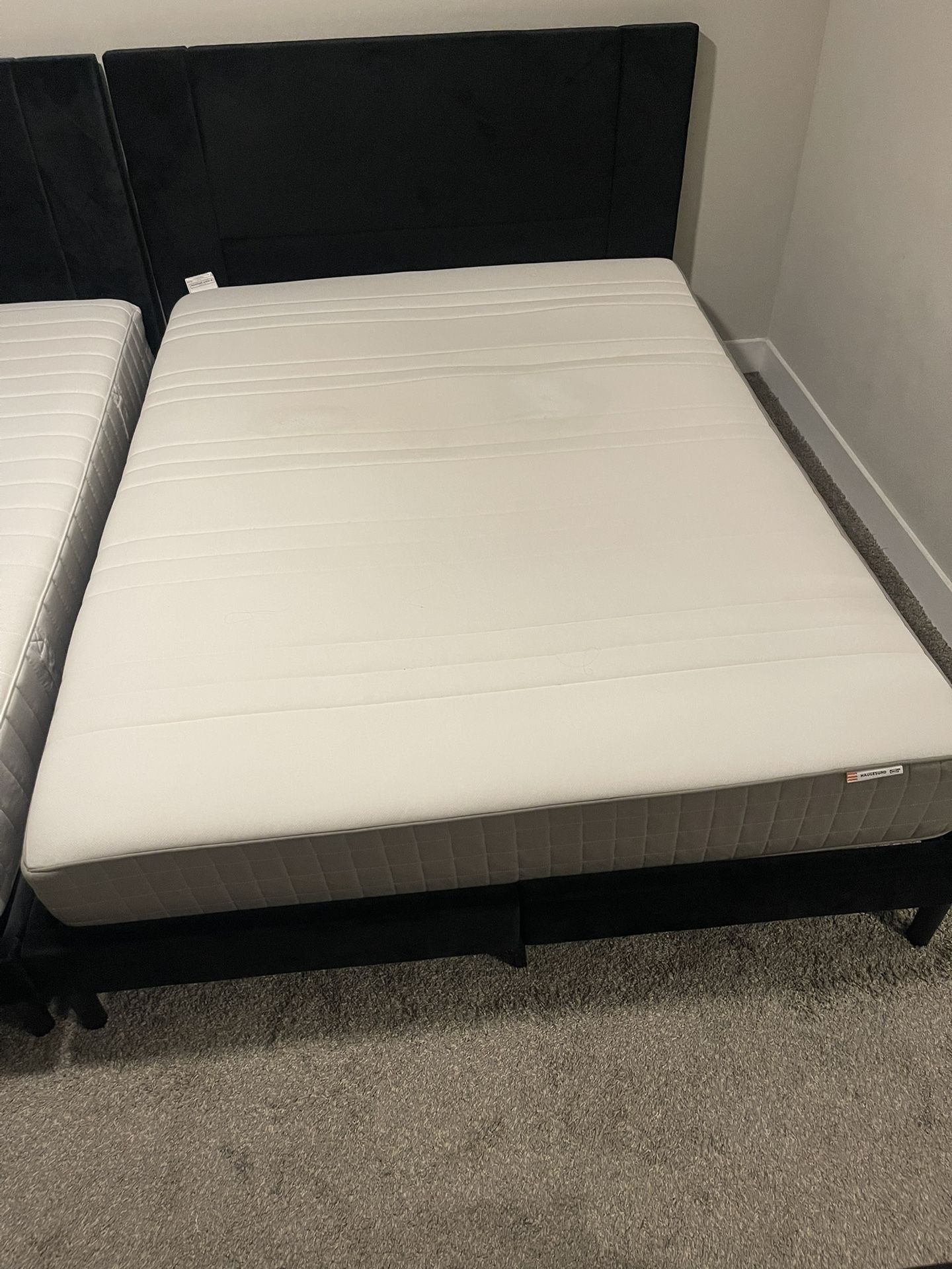 IKEA MEDIUM FIRM HAUGESUND QUEEN MATTRESS WITH BED FRAME