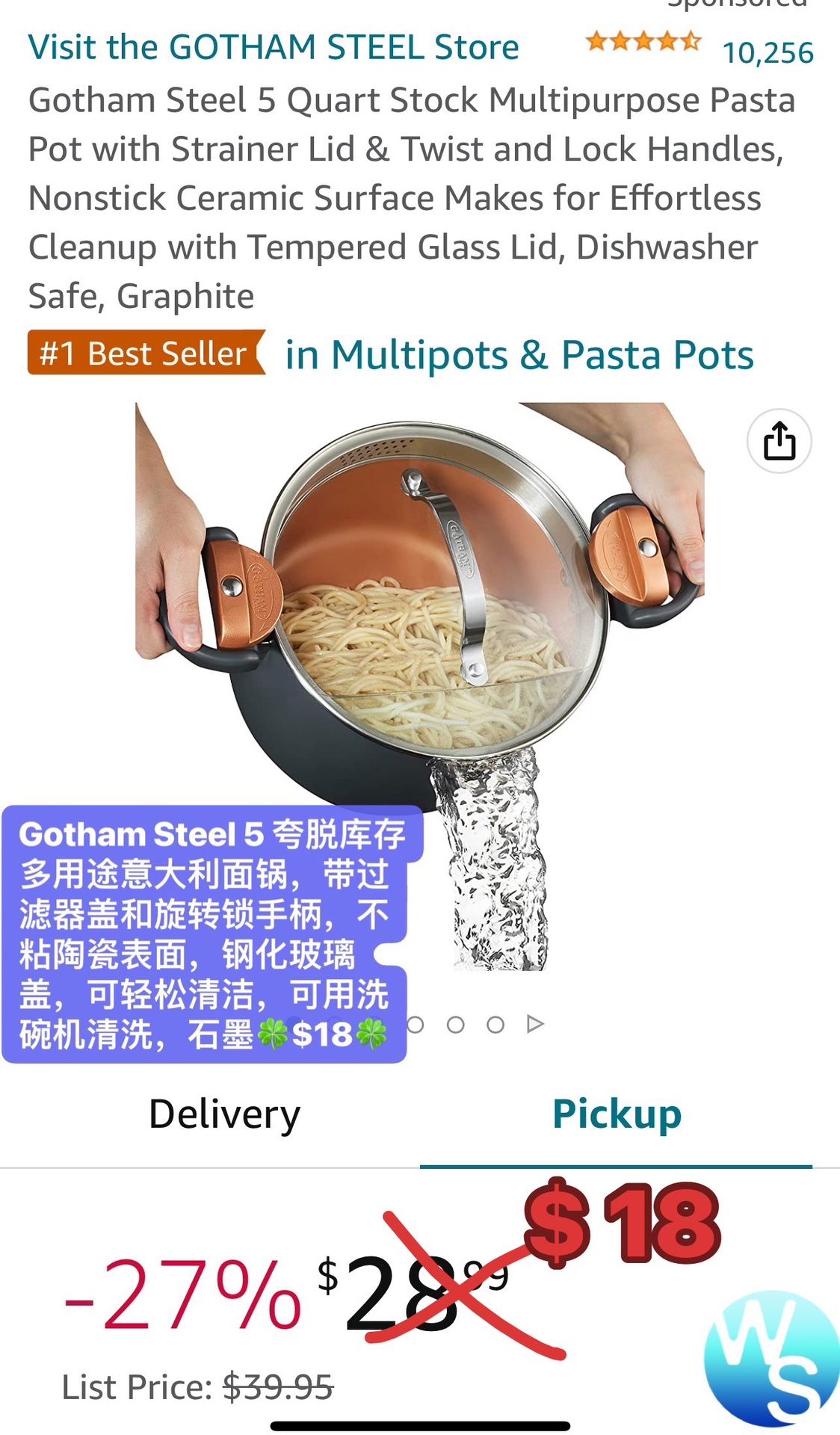 Gotham Steel 5 Quart Stock Multipurpose Pasta Pot with Strainer Lid & Twist and Lock Handles, Nonstick Ceramic Surface Makes for Effortless Cleanup wi