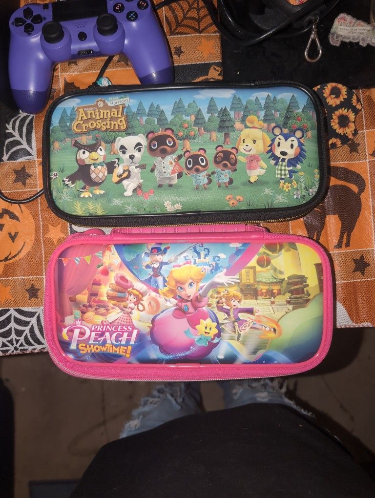 They are both brand new, never used. You can buy both for cheaper or buy them separately. They each have slots for your games. The pink one it's built in the case and the black one has a red compartment that comes with it.