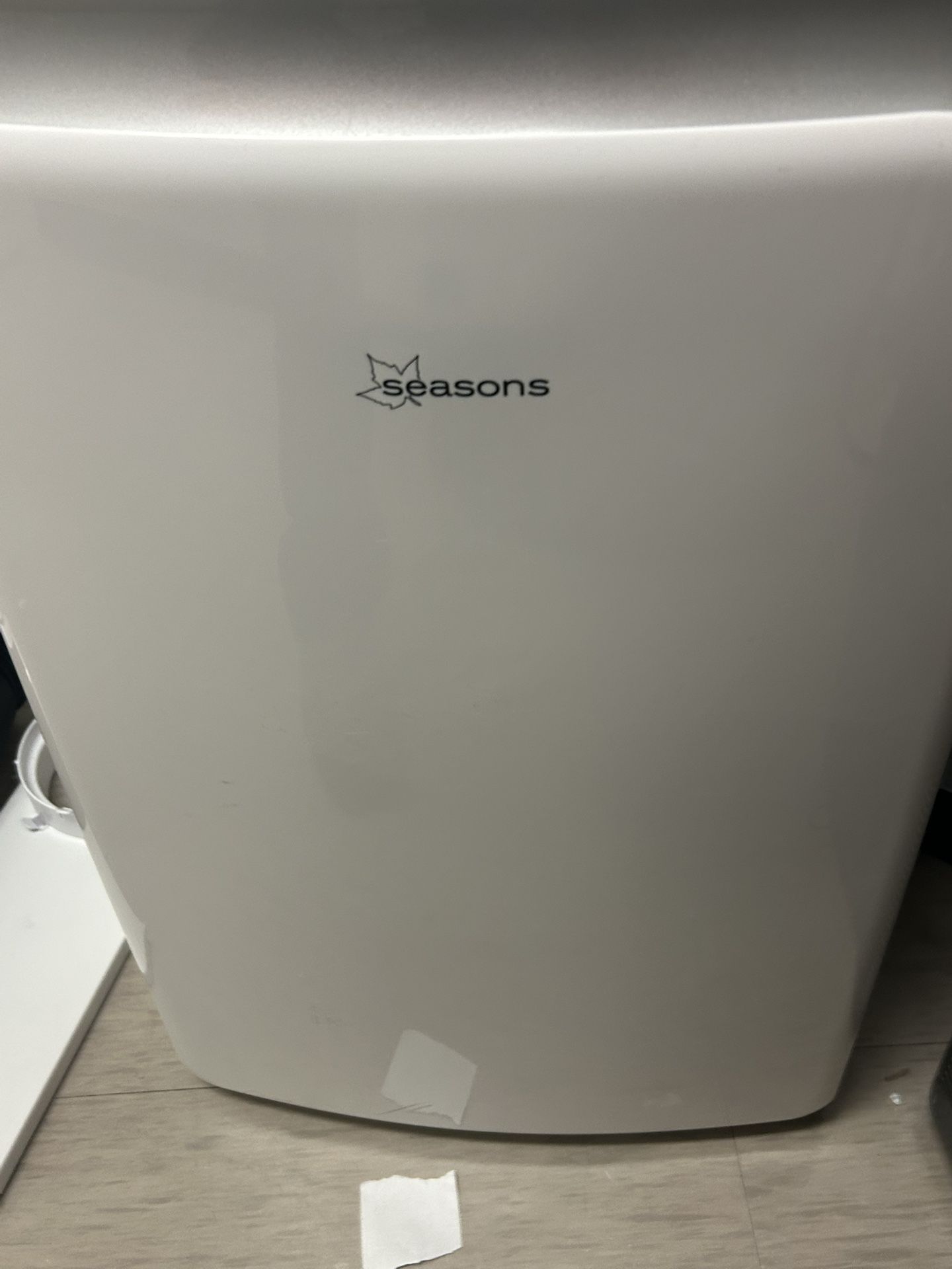 Brand new use probably 4 times. This air conditioner is 1100 dollars and sim selling for 500 it is the best you can buy. It’s Btu for heating is 10,000. And the Btu for cooling is 12,000. They sell fast so let me know. It covers 700 square foot. All the hoses and remote are in a bag from the factory.