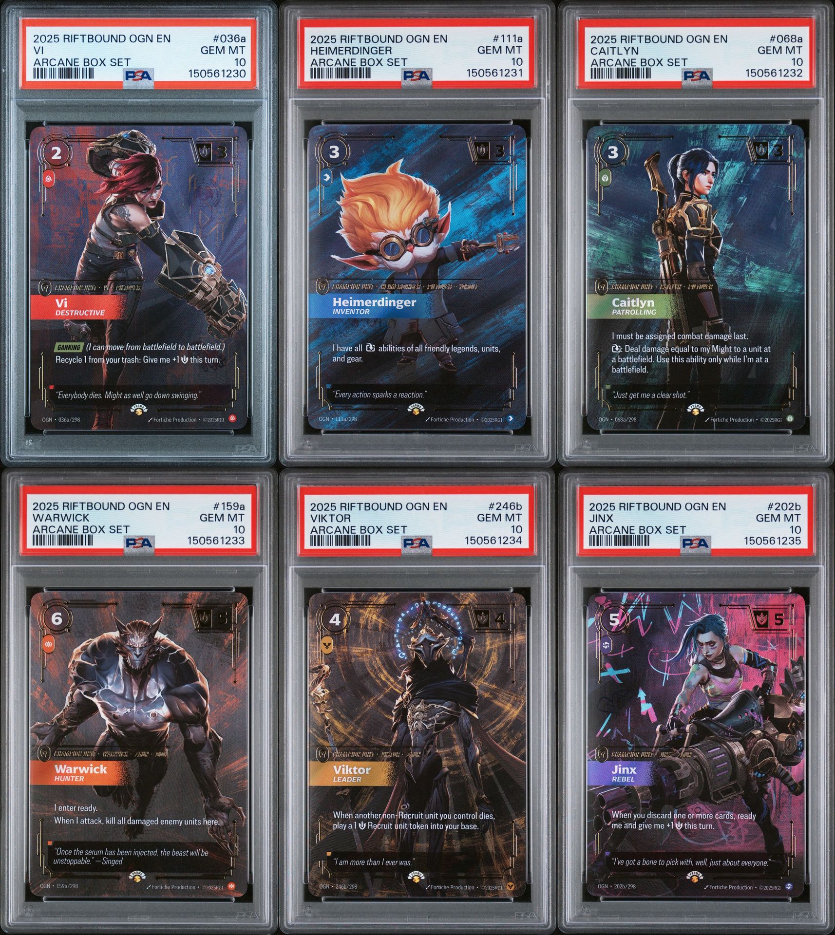 Riftbound Origins PSA 10 Arcane Box SEQUENTIAL Set VI, Heimerdinger, Caitlyn, Warwick, Victor, Jinx