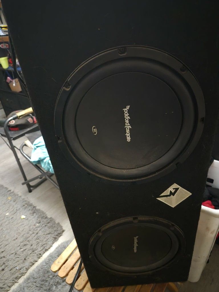 Rockford Fosgate, 2-10" subs, sub box, and Kicker Amp