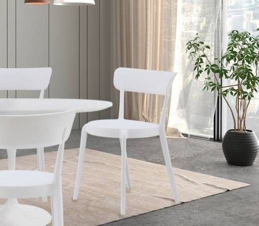 These are brand new in boxes and have two chairs per box. These are $45 per chair and come in boxes with two each. Amazon Basics White, Armless Bistro Dining Chairs. Set of 10 armless bistro chairs for indoor/outdoor dining or accent pieces Clean, simple design with a mid-century modern look Made with premium injection molded plastic for durability Solid back rest, rounded seat, and straight legs with foot rest Product Dimensions19.7"D x 20"W x 31"H Item Weight17.2 Pounds