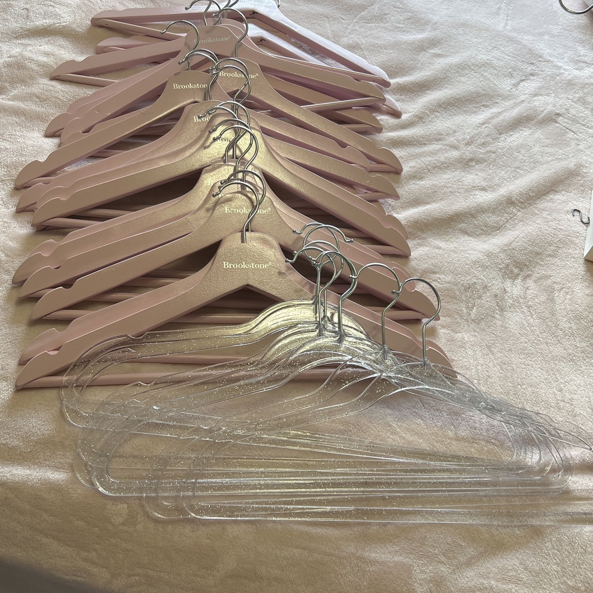 26 hangers Total Price firm 18 pink brookstone wooden hangers 8 plastic shimmery hangers All for $50 Pick up in Fort Pierce