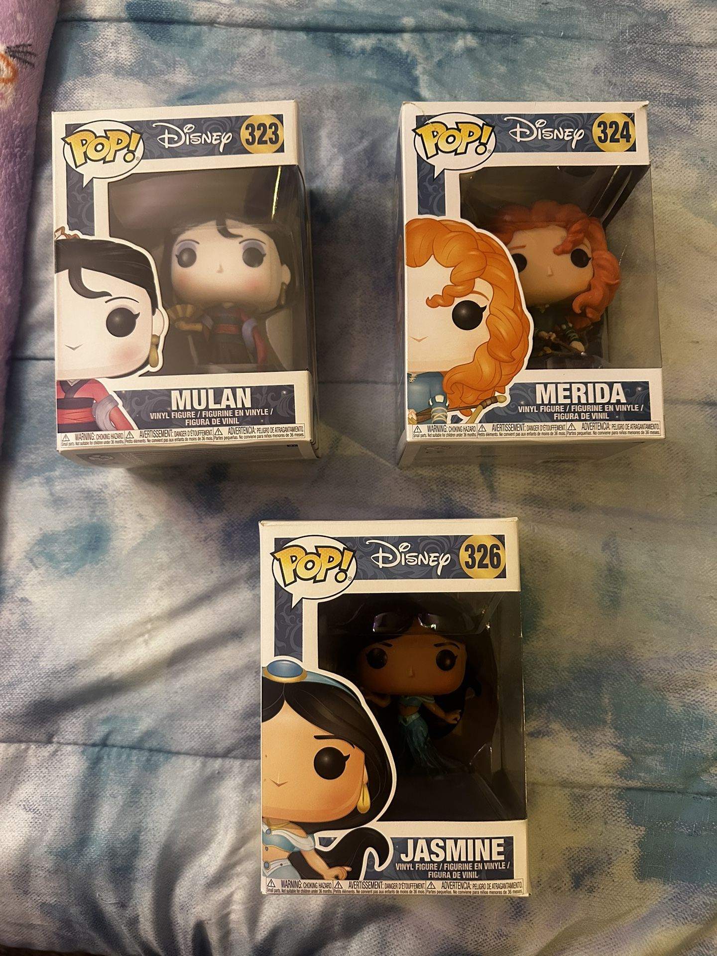 This Funko Pop set comes with 3 Funko pops from a smoke free home and weatherproof totes. 3pops: Jasmine Merida Mulan
