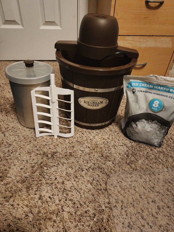 Comes with a bag of rock salt. Only used once. Still in original box.