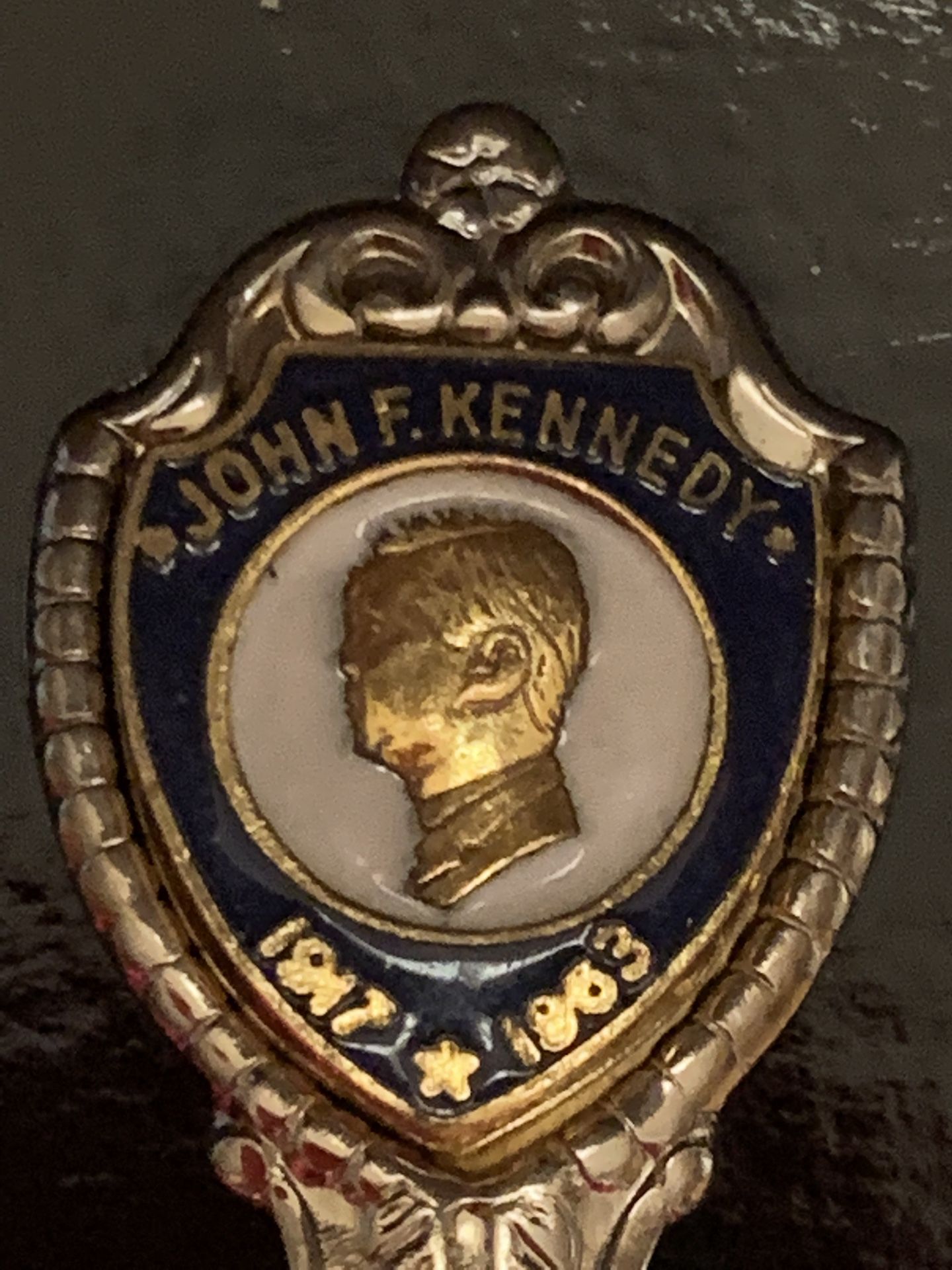 Commemorates President Kennedy with birth and death years under his gold tone raised profile. See pics for full description. Some enlarged to show details. Stamped USA.