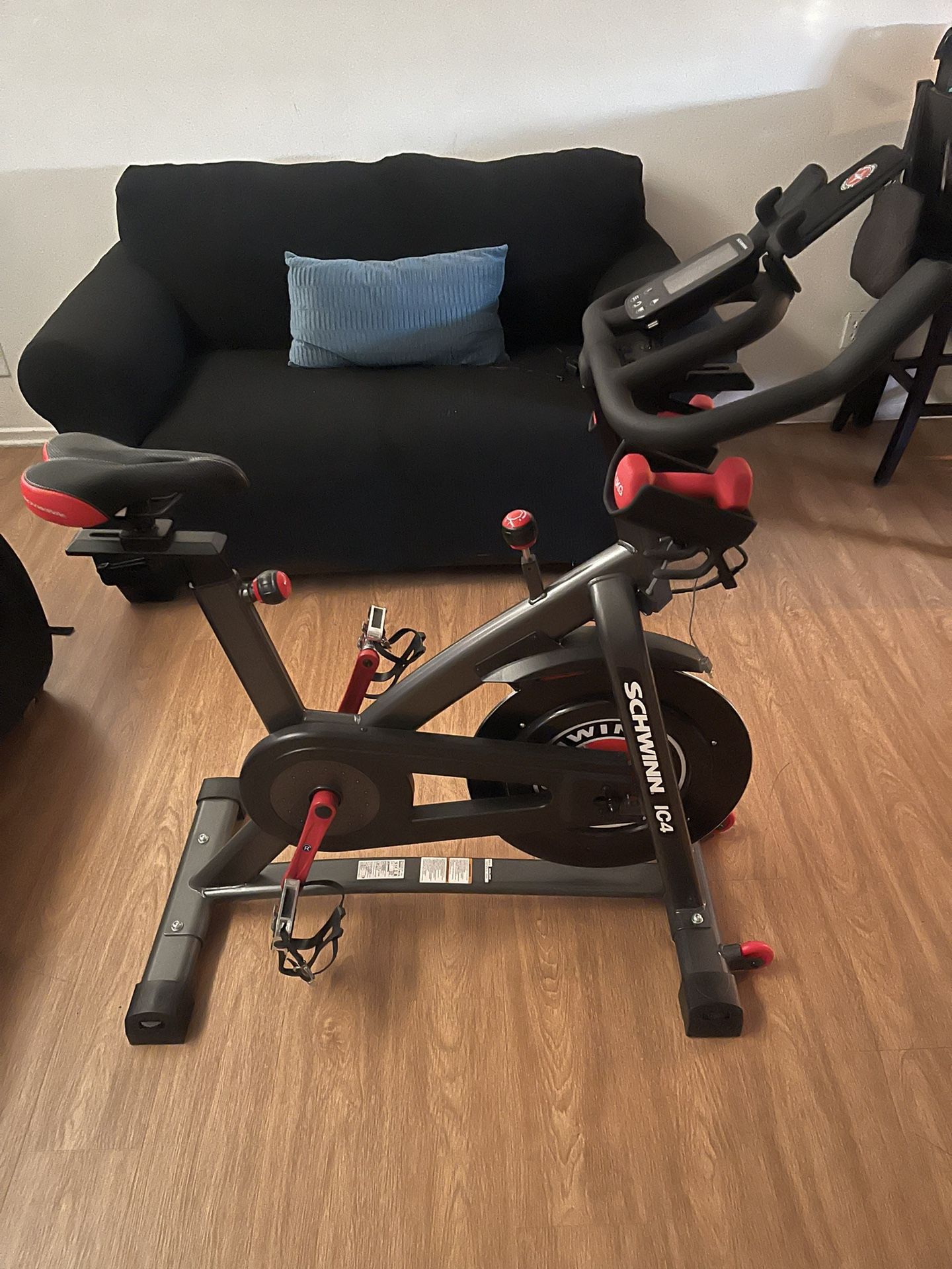 Schwinn IC4 Indoor Cycling Bike, Console Display, Padded Seat, App Connectivity, Water Bottle Holder, Adjustable Resistance Level $350