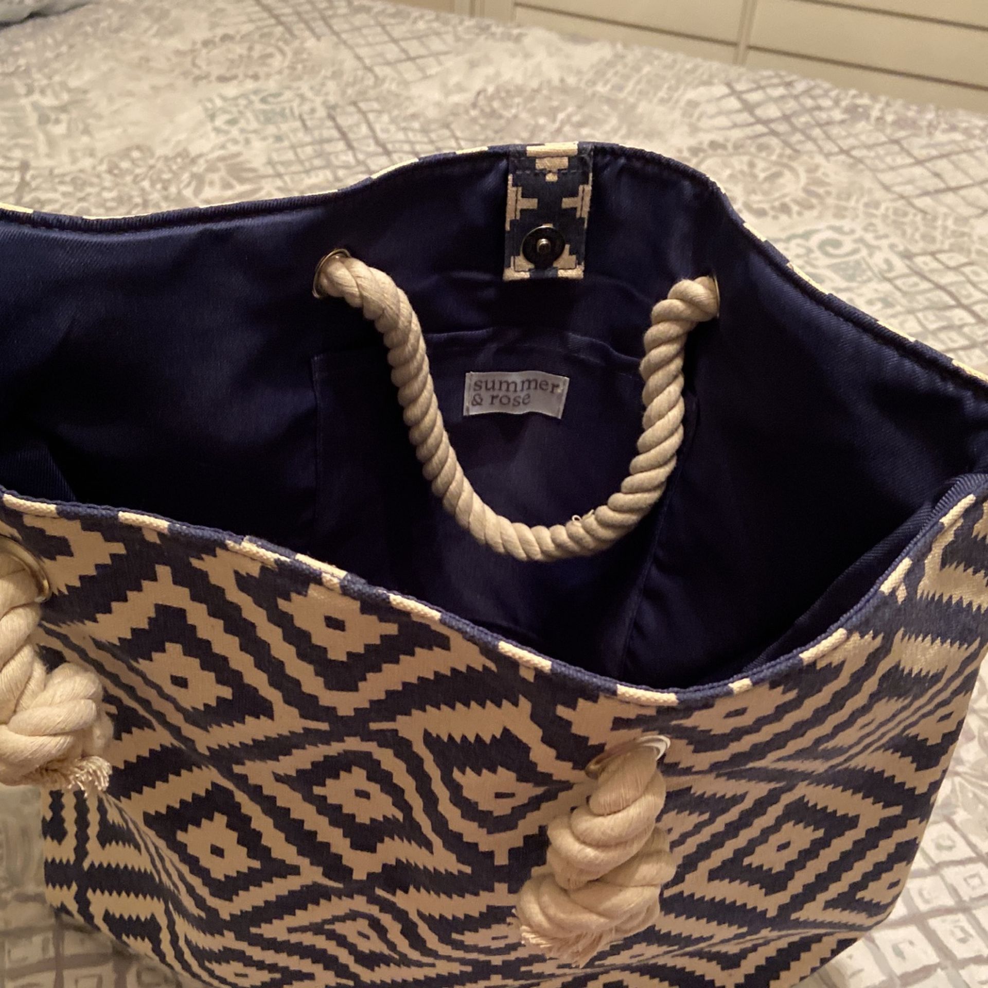 Brand new Summer Rose tote in cream/navy. Size is 17.25” x 12.75” x 6”.