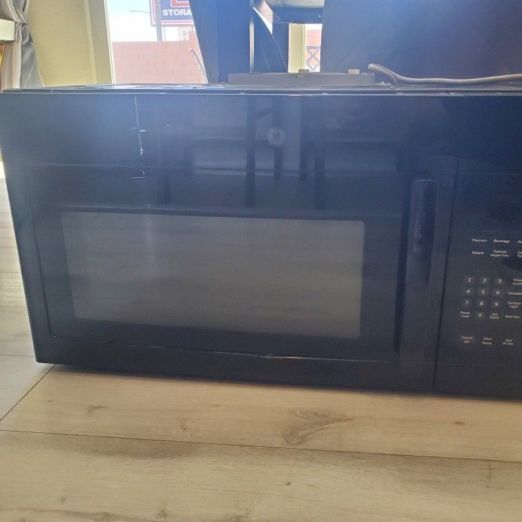 Black microwave for over the stove ,in very good condition,just the bottom frame is cracked and shows in the picture