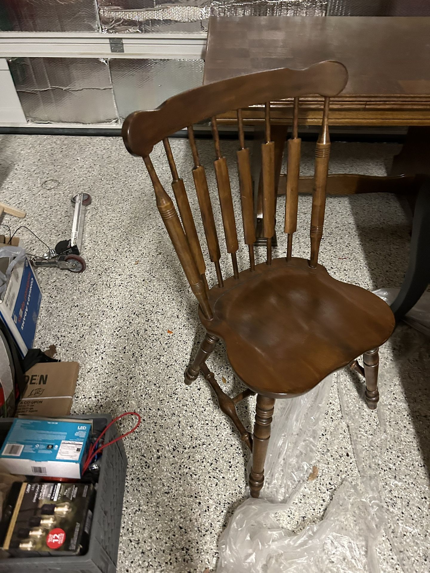 BEAUTIFUL TABLE WITH CHECKERED BOARD INLAY WITH 5 STURDY CHAIRS