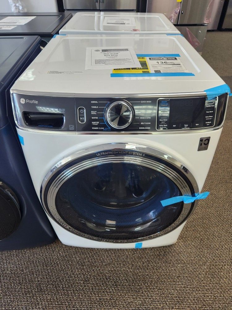 Profile 5.3 cu. Ft Smart Front Load Washer White WOdorBlock UItraFresh Vent System, Microban Technology, Tier 2 EStar
