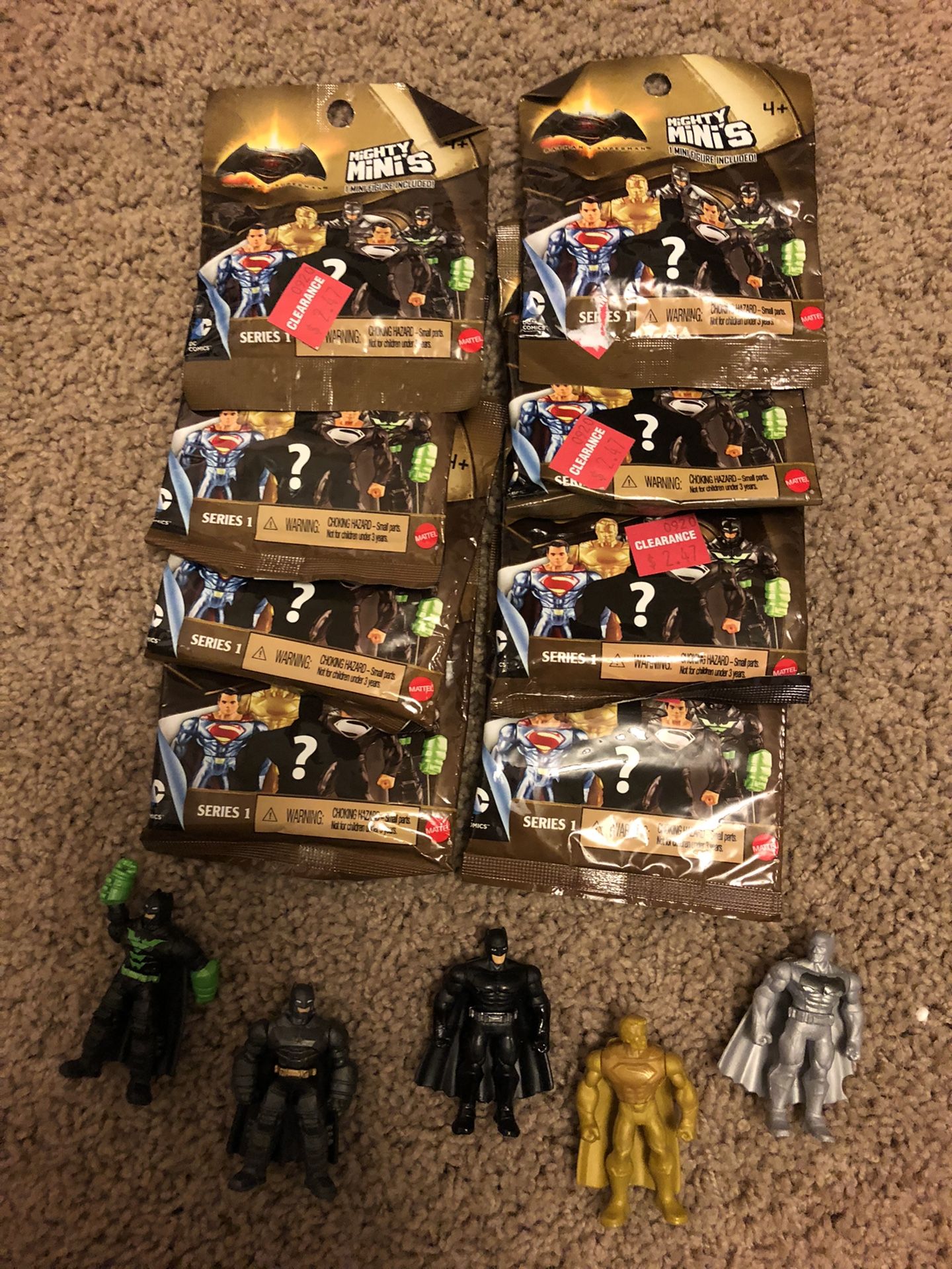 Batman versus superman mighty mini figurines. Eight unopened and five different figures open for a total of 13 figures. Must pick up in Mason/Deerfield Township area if needing shipped $3.49 plus a three dollar service charge will be added to the selling price.Get them all for $25.