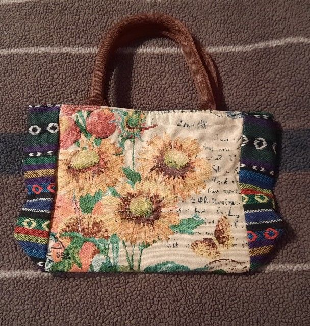Multi-Colored Brown/Orange Floral Fabric Handbag