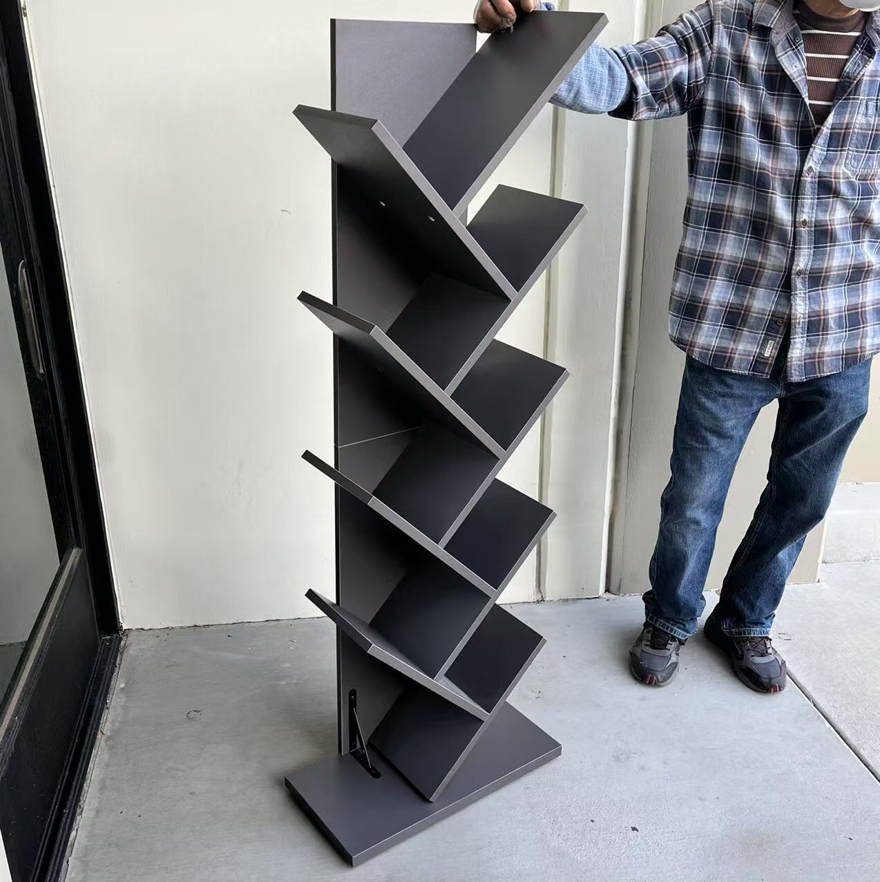 New In Box 16”W x 9”D x 55”H 8 Tier Bookshelf Display Rack Slanted Shelf Organizer Gray Color