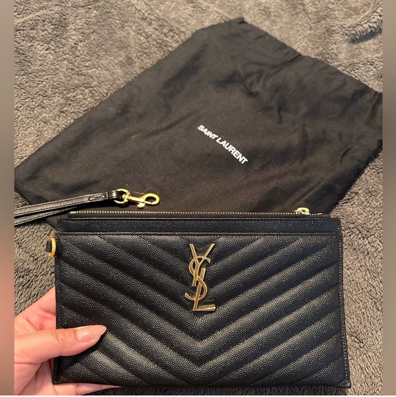 YSL - Saint Laurent Monogram Large Bill Pouch in Grained Leather Excellent condition - Like new. Dust bag included. Pick up only - cash/zelle/venmo at pick up.