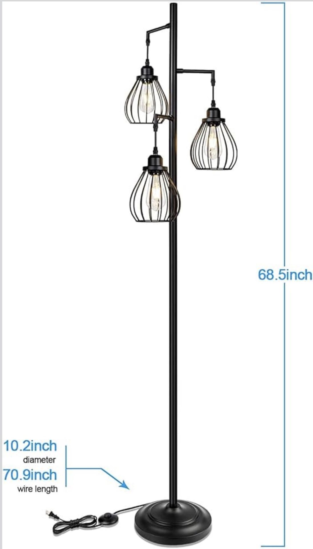 Lakumu Industrial Tree Floor Lamp for Living Room, with 3 Elegant Teardrop Cage Heads &, Sturdy Base Tall Vintage Pole Light Great for Farmhouse Rustic Bedroom Office