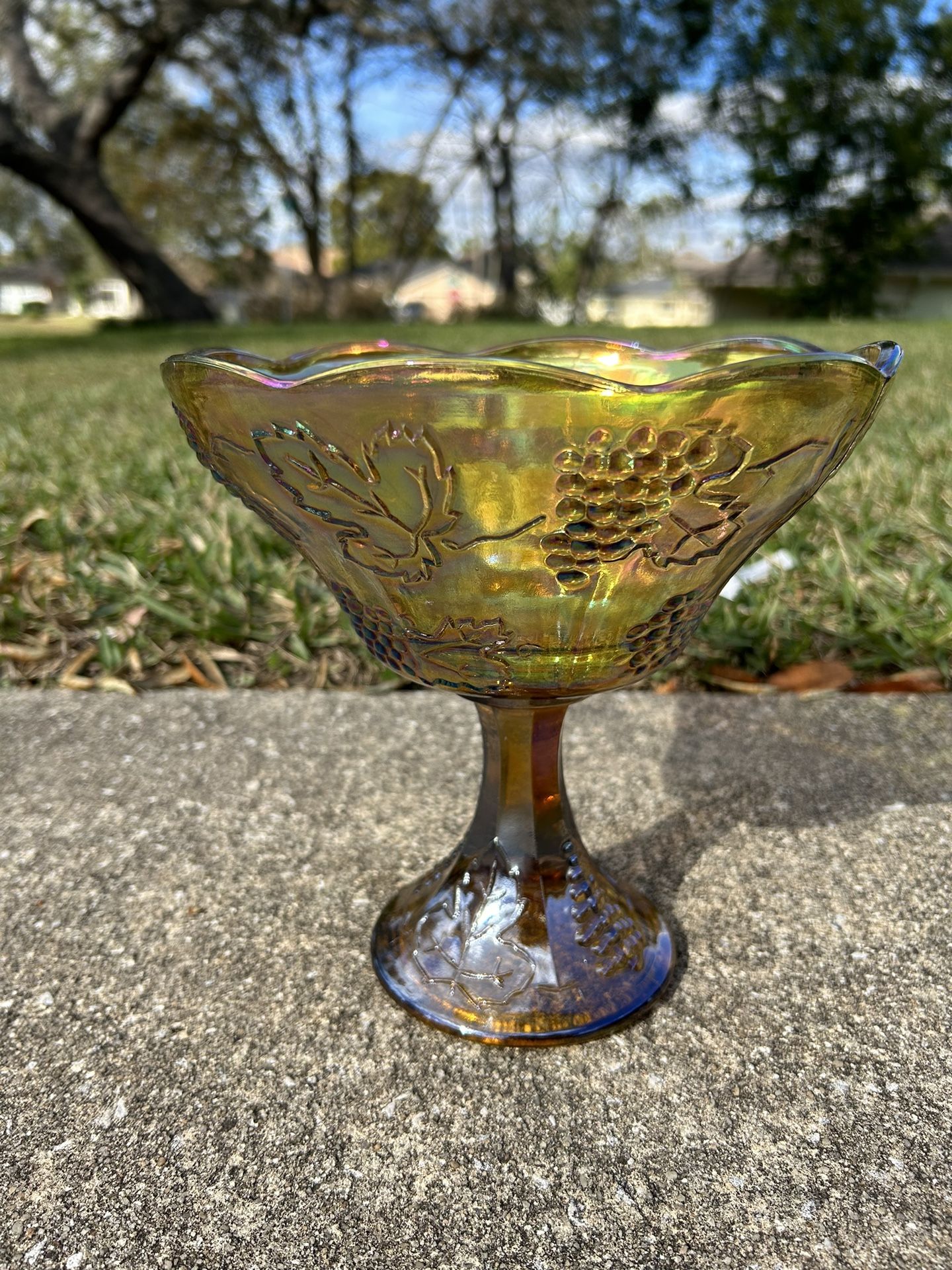 VINTAGE INDIANA GLASS AUTUMN HARVEST MARIGOLD GLASS 8" FRUIT BOWL C988)