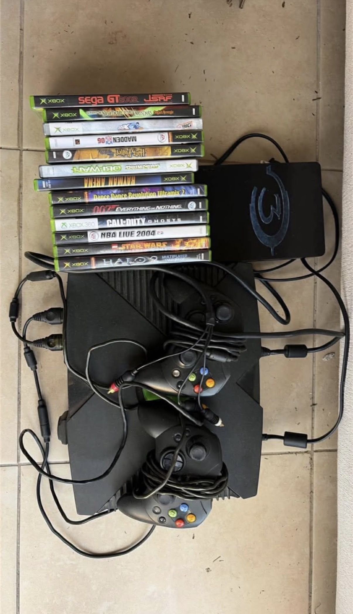 Original Xbox with games. Used but console is in working condition. Have not played every game but they’ve been kept is box in safe area.