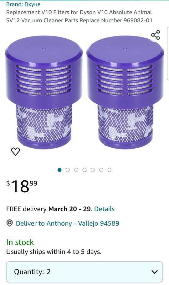 Replacement 3 PACK V10 Filters for V10 Absolute Animal SV12 Vacuum Cleaner Parts Replace Number 969082-01