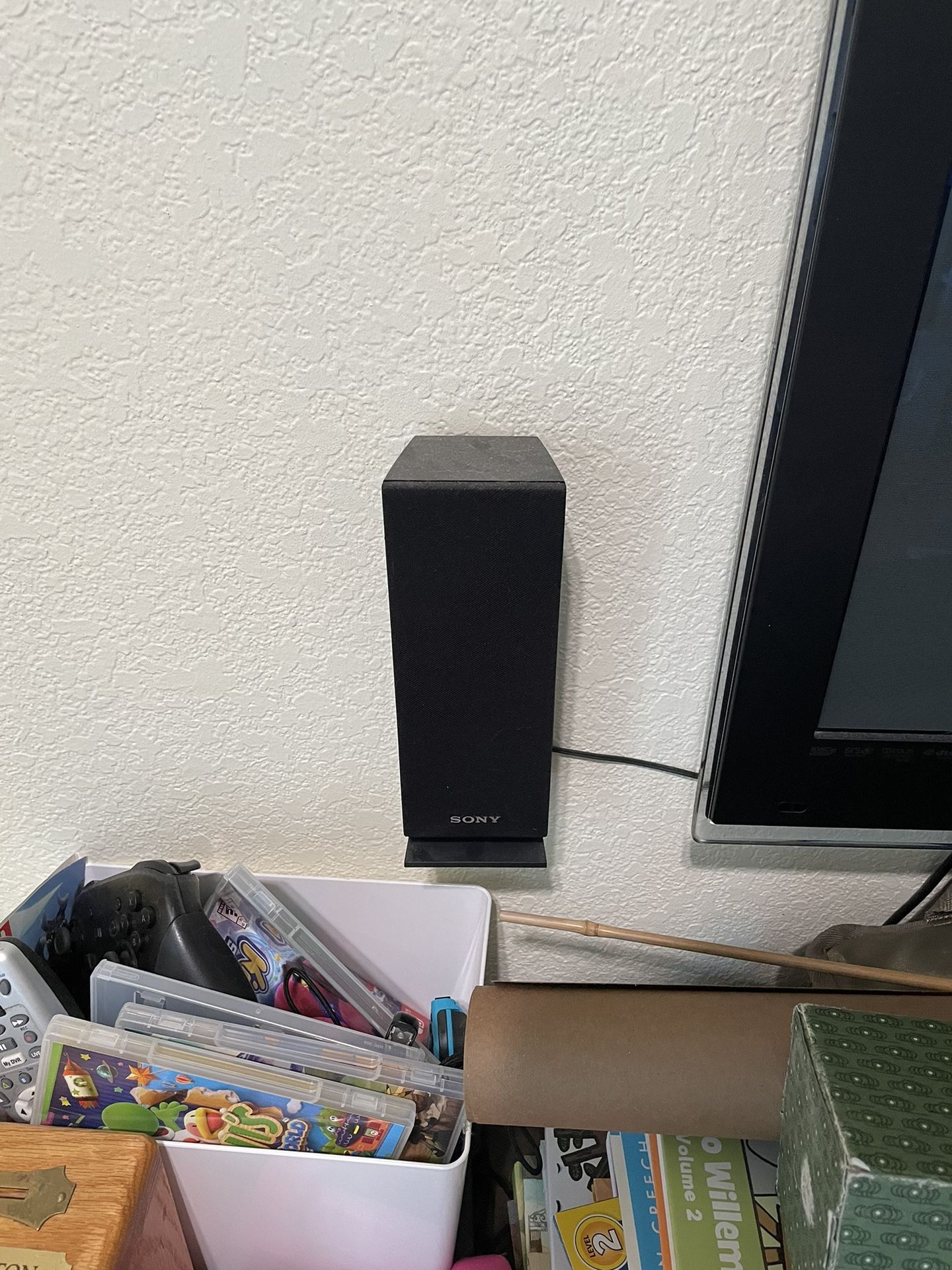 1 subwoofer 1 front speaker 4 surround speakers. Note that you need to replace audio cable for connecting two rear speakers.