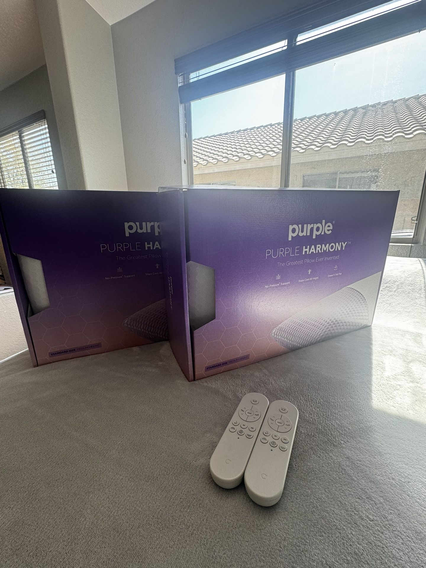Selling our King Size Casper Bed with Adjustable base. Only 3 years old. NO kids, pets or stains. Still has 2 years of warranty available. Includes •2 BRAND NEW Purple Harmony Pillows “Priced at $239 EACH” •2 Casper Pillows •King Size Mattress •Adjustable Base “Head & Feet Elevating” & “Massage” •2 Remotes with batteries •King Size bed sheets with pillow covers •King Size Water Proof bed cover If you have any questions please reach out.