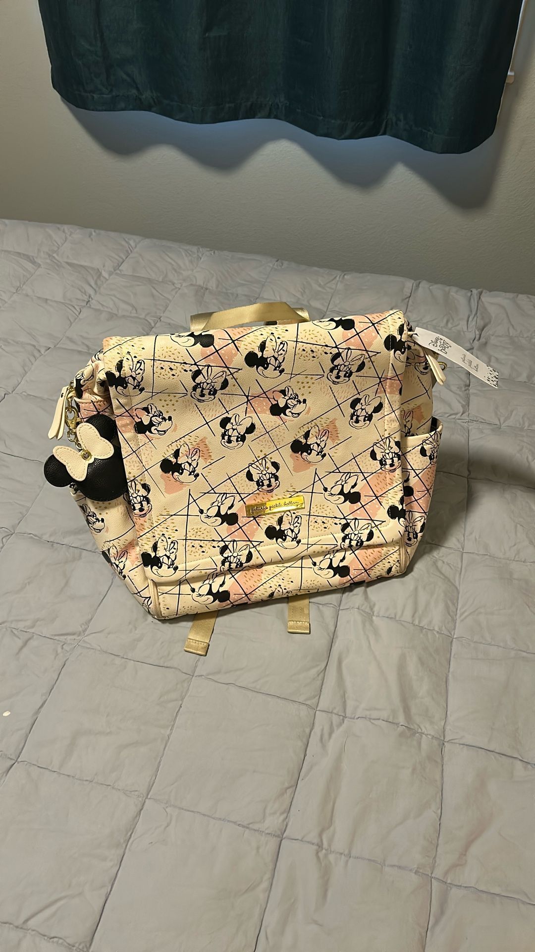 Adorable Minnie Mouse patterned Disney diaper bag brand new. Got as a gift before I found out I was having a boy so it never got used. Has changing mat and stroller straps. Can be carried as a backpack or over the shoulder! Very cute and holds a lot! From a pet free smoke free home!