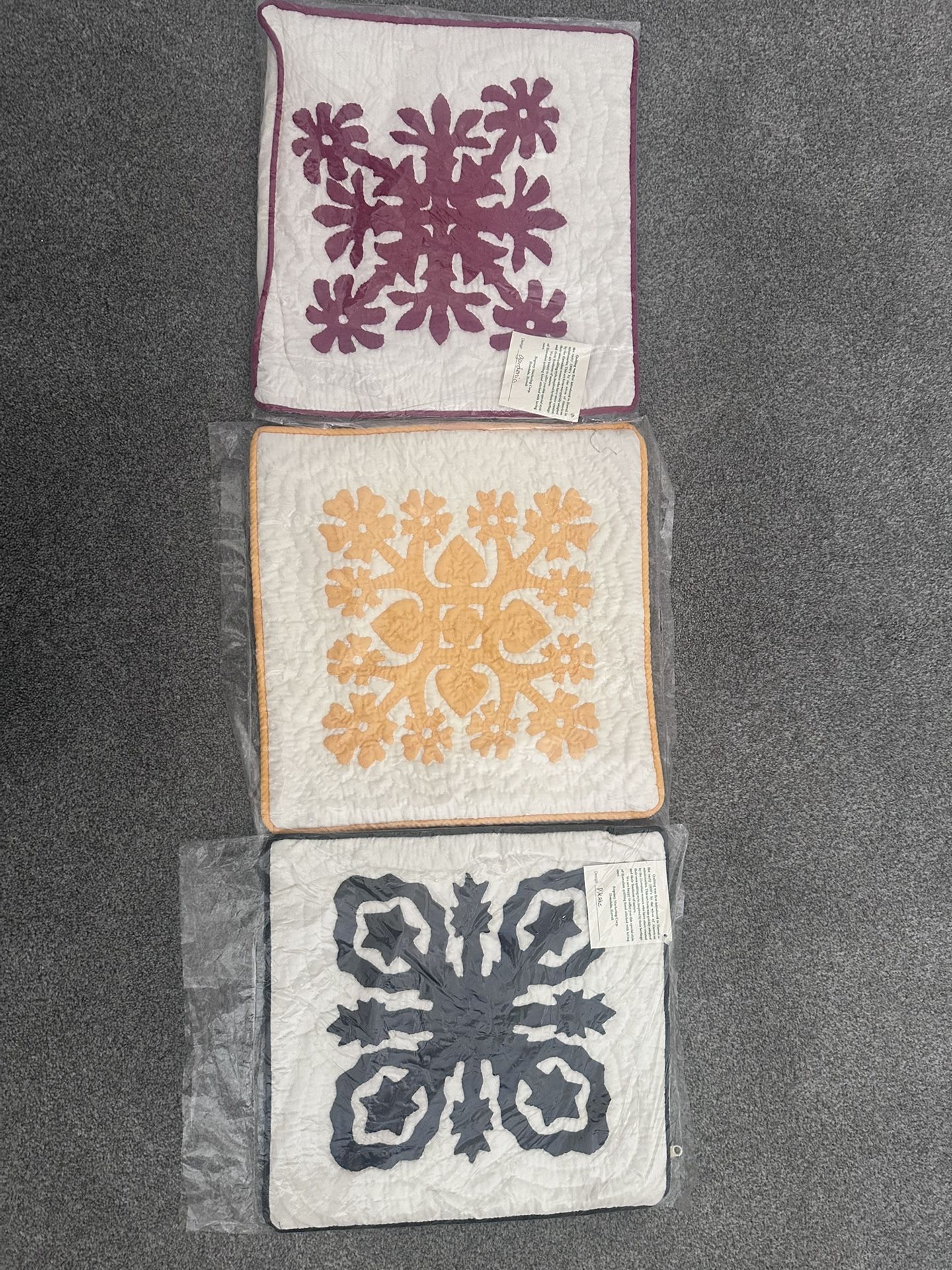 Hawaiian hand stitched pillow shams New in package 12 by 12 inches $15 each or set of 3 for $40