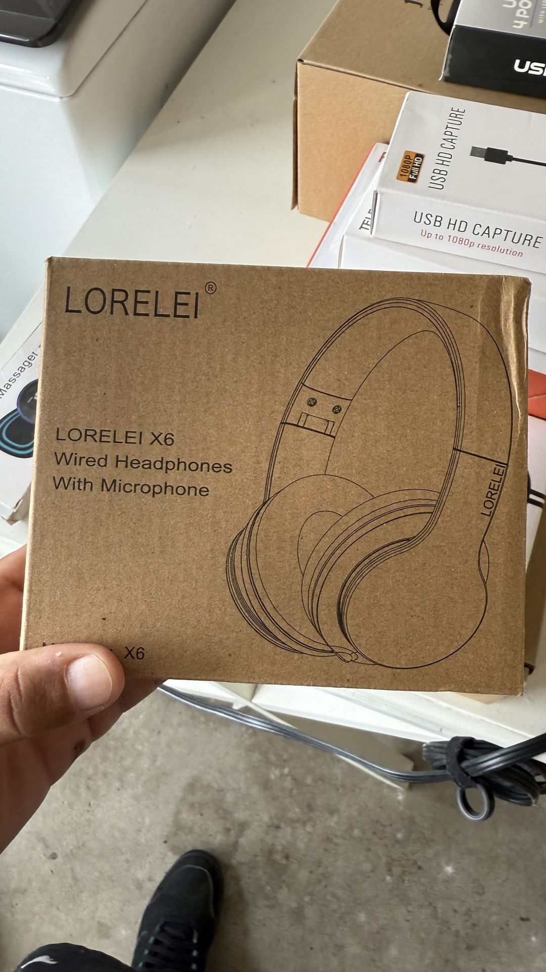 Brand new LORELEI X6 headphones with microphone. Soft ear cushions, clear audio, perfect for calls, meetings, gaming, school, and music. Unused and sealed.