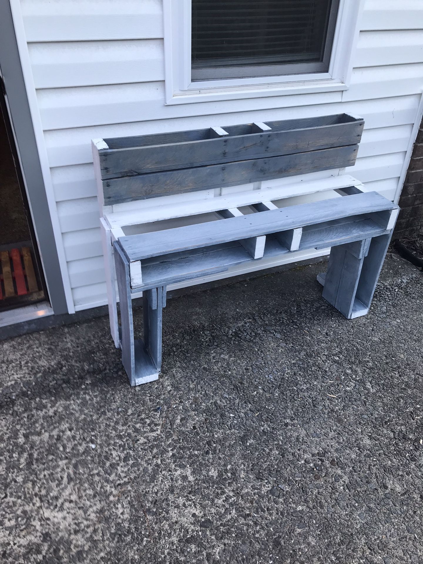 Slate Gray Stain And White Farmhouse Bench With Back