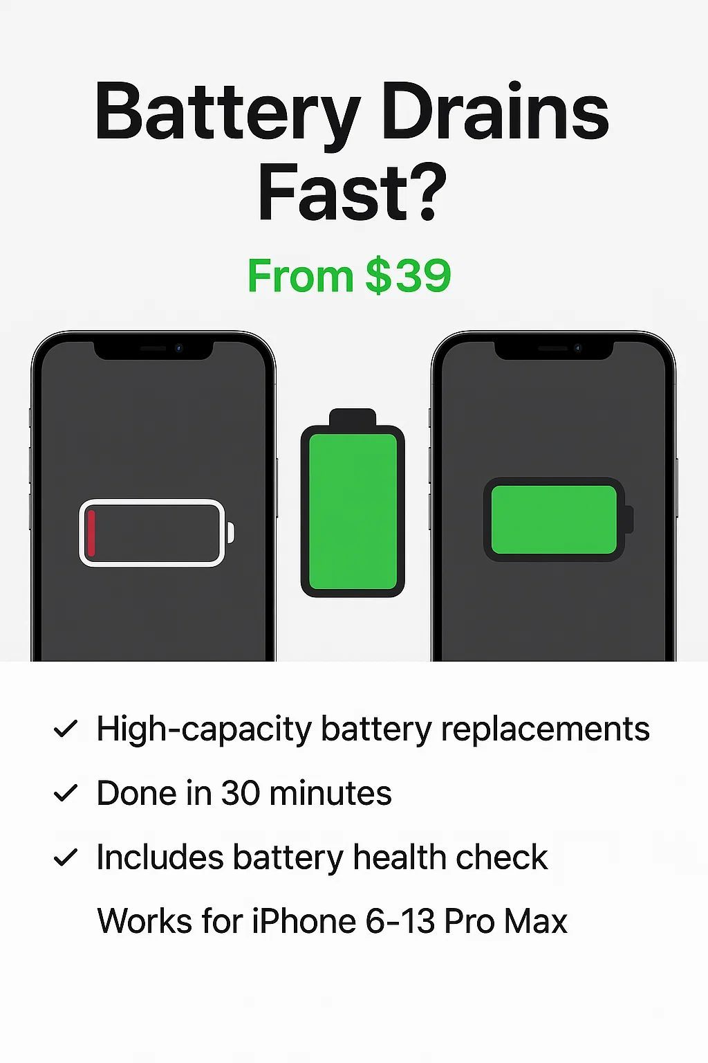 🔋 iPhone Not Holding Charge? Battery Replacement – $39+